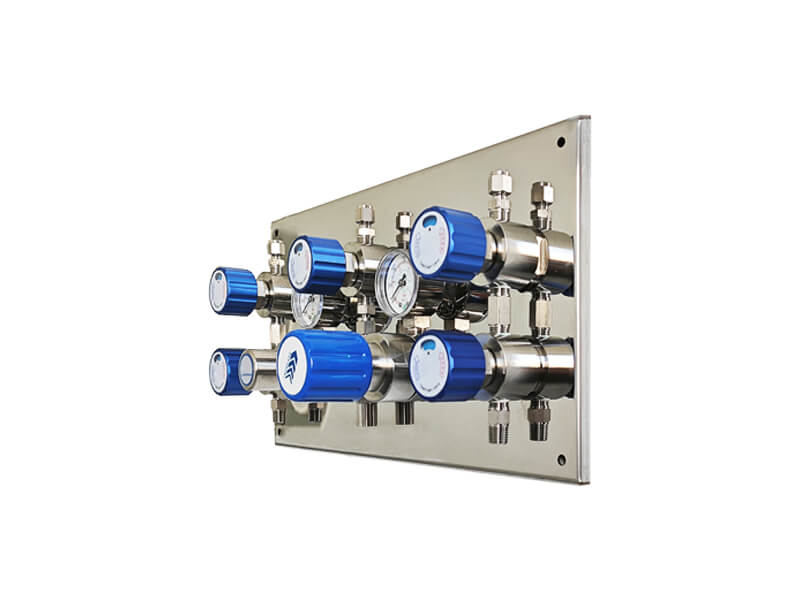 AmcareMed stainless steel specialty gas manifold control panel is used for the decompression and gas supply of high-pressure gas cylinders on both sides, and realizes continuous gas supply through pressure differential automatic switching. The input pressure can reach 250bar, corrosion resistance, clean workshop assembly and testing, suitable for high-purity gas use in laboratories, gas analysis, etc.