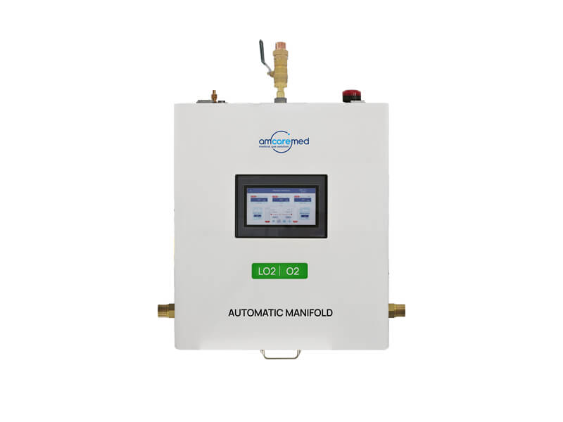 AmcareMed Liquid X Cylinder oxygen LCD manifold is a fully automated gas distribution system designed for reliable and safe liquid oxygen supply. It automatically switches between oxygen cylinder and liquid dewar oxygen and displays key parameters on an integrated LCD panel.