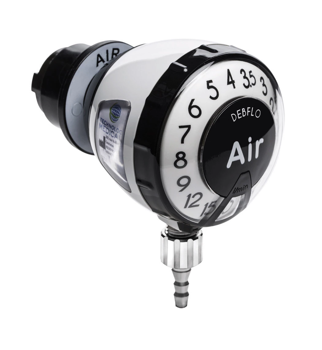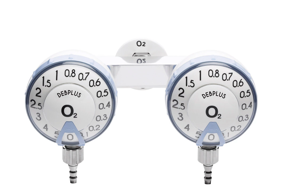 The flowmeters with pre-adjusted flowrates DEBFLO and DEBPLUS are used to set the flow of a gas that is to be delivered to patients through the respiratory tract. They should be connected to a source of pressured gas on the wall either using a direct probe or a rail mounting system. They must be fitted at the outlet either with a humidifier/nebulizer or with an outlet tubing nipple.