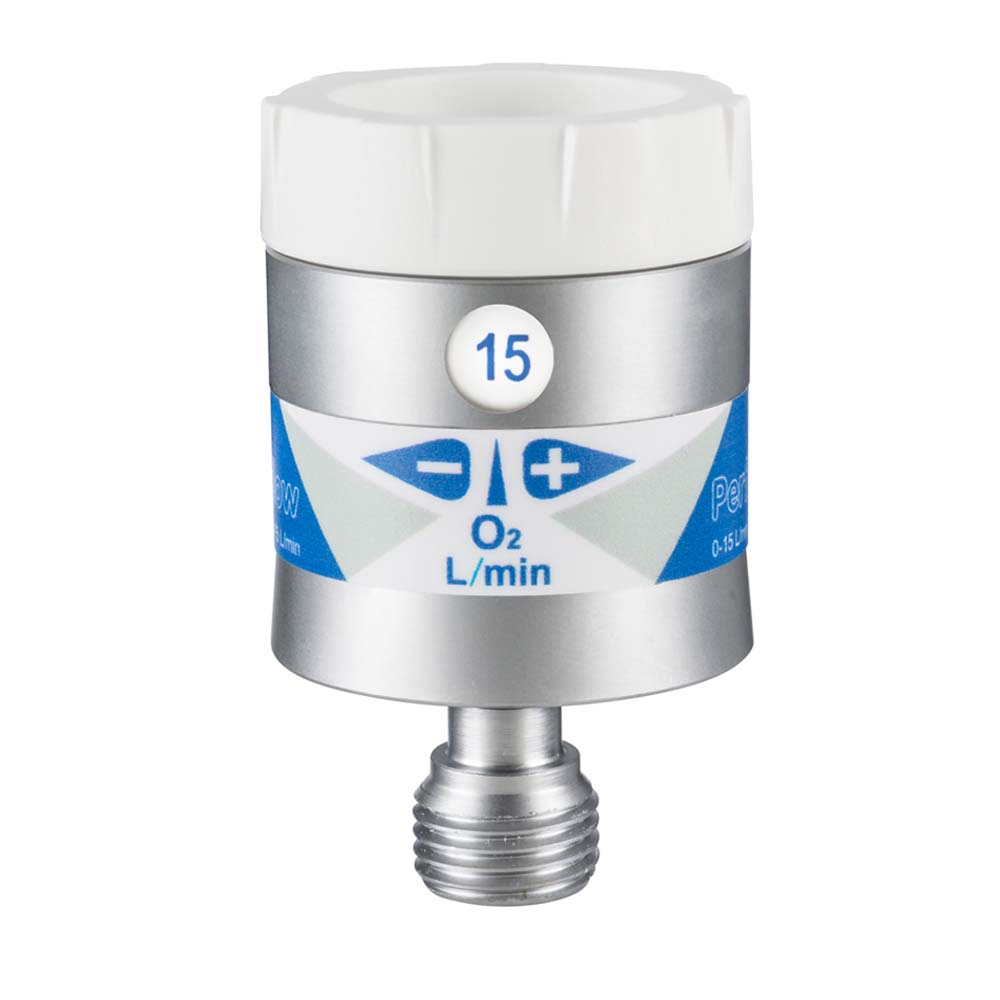The Perflow®P4 and P5 click-style flowmeters recommended for use in oxygen therapy, provide greater comfort and safety against accidental flow pressure changes thanks to their design with high-precision calibrated orifices and a “click” type regulating knob. Large diameter, high visibility selected flow indicator display.