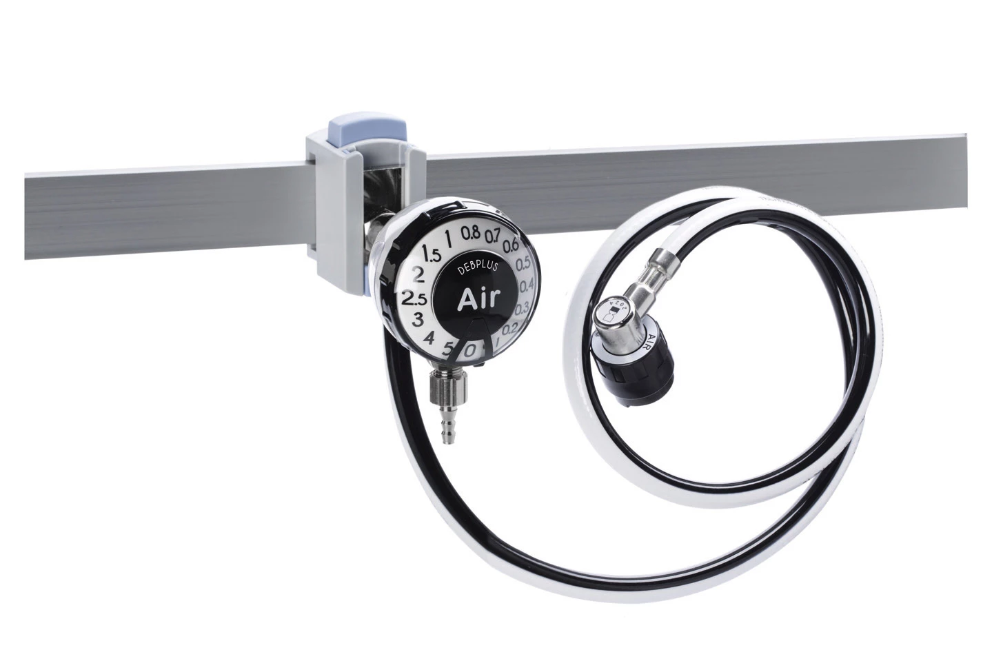 The flowmeters with pre-adjusted flowrates DEBFLO and DEBPLUS are used to set the flow of a gas that is to be delivered to patients through the respiratory tract. They should be connected to a source of pressured gas on the wall either using a direct probe or a rail mounting system. They must be fitted at the outlet either with a humidifier/nebulizer or with an outlet tubing nipple.